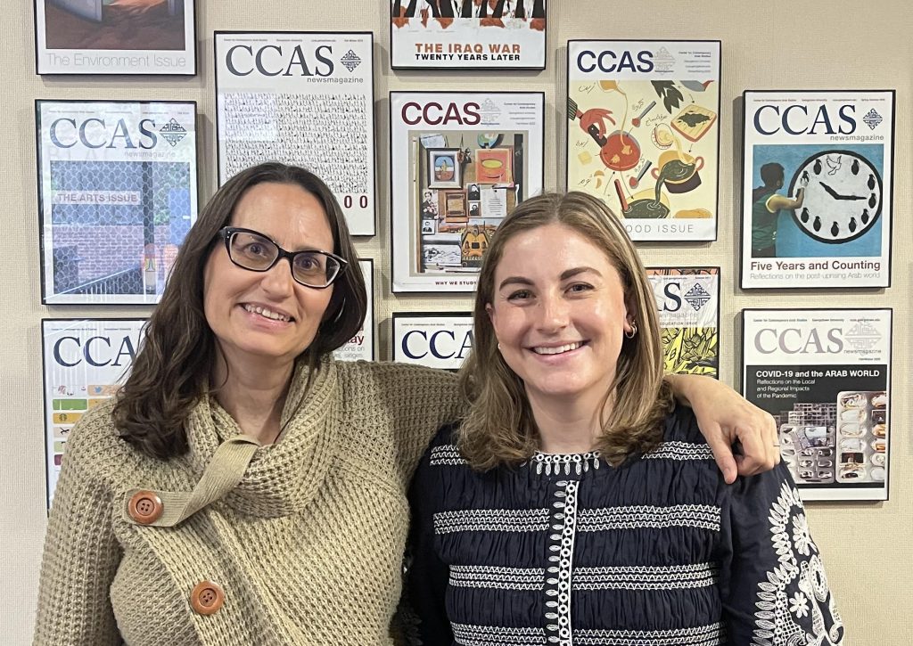 We’re excited to welcome two new members to the CCAS team! Mimi Kirk (left) joined CCAS last fall as Associate Director. She previously served as Program Manager at the Middle East Studies Association and Managing Director of Al-Shabaka, The Palestinian Policy Network. She is also editor of the Journal for the Study of Christian Zionism and has taught the MAAS thesis workshop for several years. Mackenzie Poust (right), a 2020 graduate of the MAAS program, returned to CCAS in early 2025 as Operations and Program Manager. A former CASA fellow in Amman, she brings experience from a range of NGOs and academic institutions focused on the Arabic-speaking world.