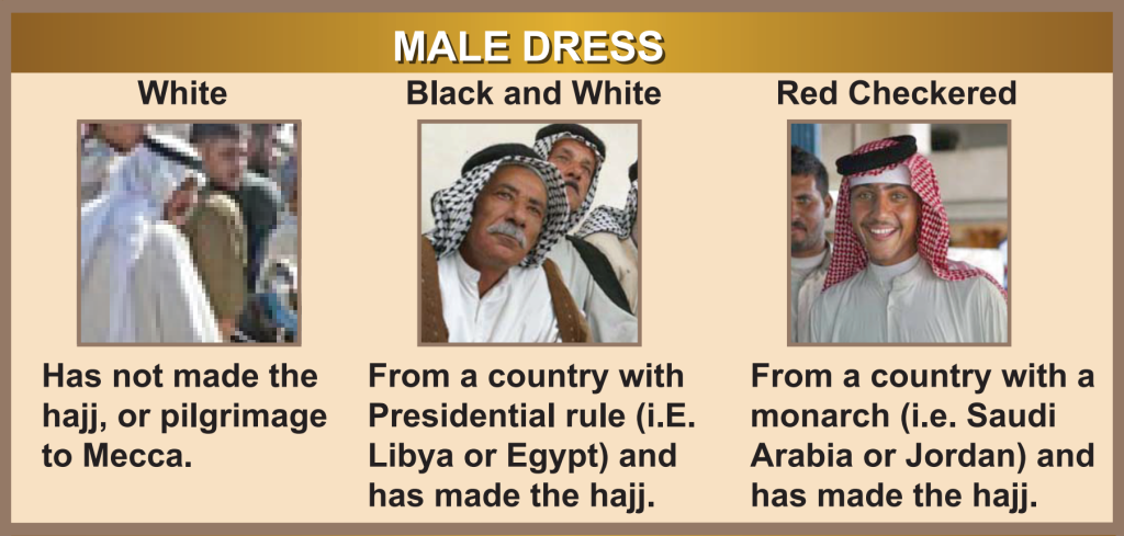 Another example is the simplified depictions of the kufiya. For example, a red and white kufiya, according to the Iraq Culture Smart Card, meant the person was from a country with a monarchy, while black and white indicated he was from a country with presidential rule. A plain white kufiya signified that the wearer had not been on pilgrimage to Mecca. But what did all this have to do with Iraq? Over and over again the cultural training material relied on wrong information and Orientalist stereotypes and failed to demonstrate an understanding of the big picture. Was it racism on the part of the developers? Lack of time? Lack of knowledge? Much of the material lists no author, so it is difficult to probe further.