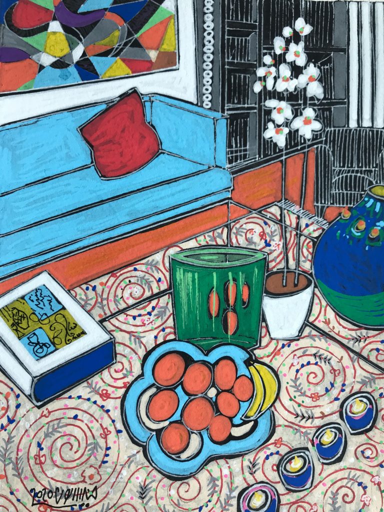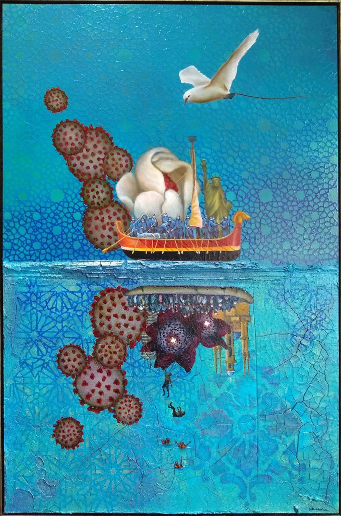 The art illustrating this article is part of the exhibit “Art in Isolation: Creativity in the Time of Covid-19 ” at the Middle East Institute, which was curated by MAAS student Laila Jadallah. You can read about her role here . All works in the exhibit are for sale, with proceeds going to the artists.