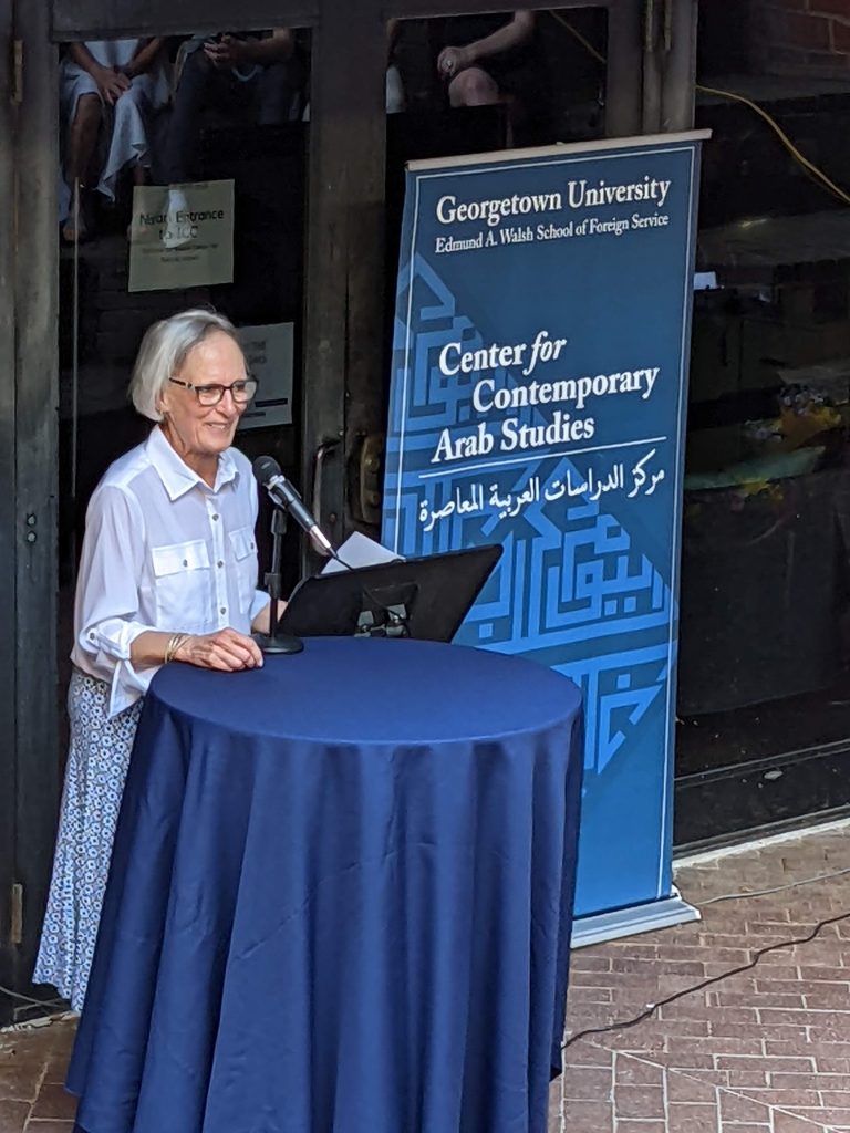 Professor Judith Tucker, who retired at the end of this year after four decades at Georgetown, shares remarks at graduation