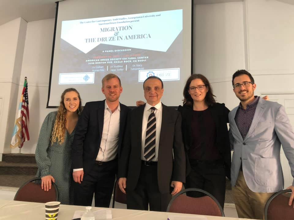 The COVID-19 pandemic brought about unprecedented circumstances that have drastically altered the way that CCAS operates as a center. Following spring break, CCAS and the rest of Georgetown quickly shifted to a virtual learning environment, moving classes, work, and—where possible—our events online. Before this transition, we were fortunate to have had the opportunity to hold a few of our early semester events in person, including a February screening of the Academy Award-nominated documentary For Sama with more than 100 guests in attendance. Also in February, CCAS organized our annual American Druze Foundation (ADF) Lecture, highlighting con-temporary topics in research about the Druze diaspora. The 2019-2020 ADF Fellow at CCAS, Dr. Graham Pitts, presented alongside Dr. Stacey Fahrenthold and Dr. Matthew Jaber Stiffler on “Migration and the Druze in America.” Recognizing that it is not possible for many of the Druze community members on the West Coast to make it to Washington D.C. for the lecture, the American Druze Foundation’s center in Los Angeles graciously hosted this year’s event, enabling the rich scholarship produced through our partnership with ADF to reach an even larger audience.